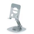 Bu, küçük boyutlu tabletleri de tutabilen, yüksek karbonlu çelikten dönen bir masaüstü cep telefonu tutucusudur. Oluk ve alt kısım, cep telefonunun ve masaüstü yüzeyinin çizilmesini önlemek için silikon pedlerle donatılmıştır. Yeni AR döner şaft, sorunsuz bir şekilde dönmesini, mekanik ses, 360 derecelik çok yönlü ayarlama, küçük katlama ve taşıma kolaylığı sağlar.